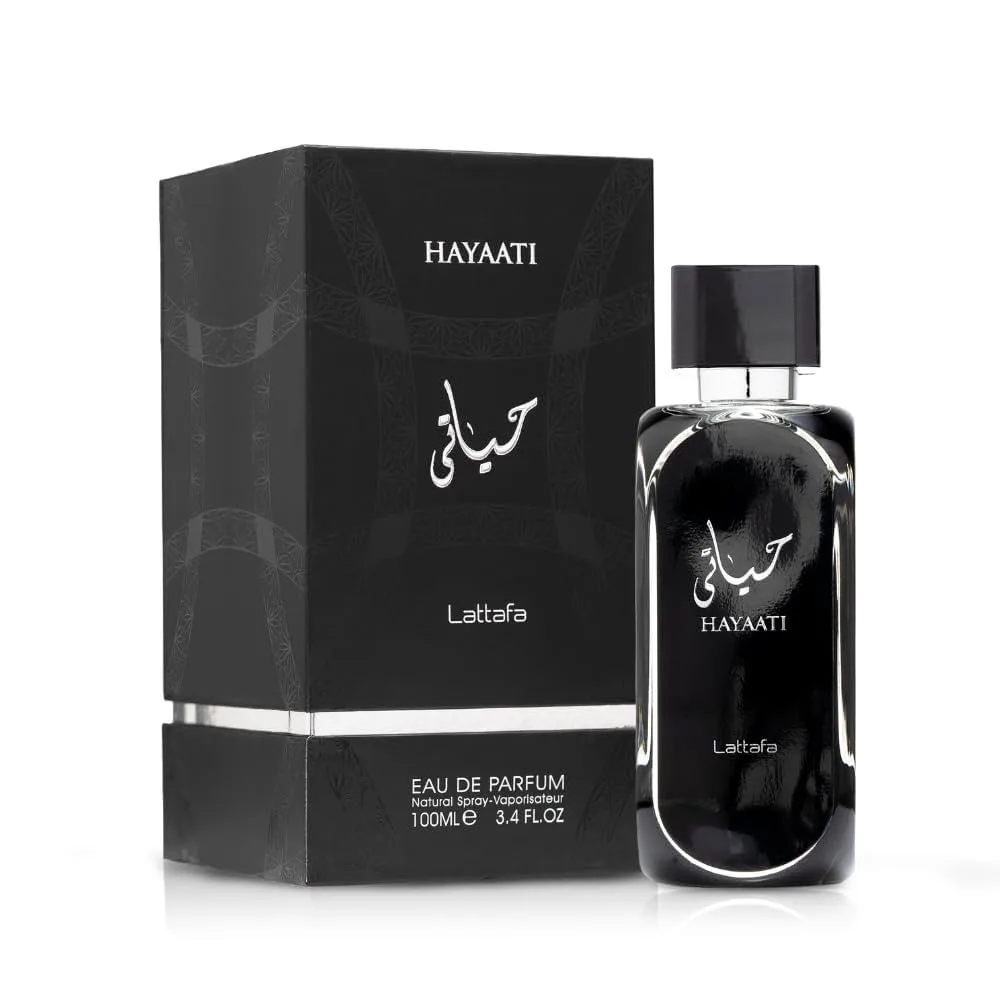 Hayaati de Lattafa Perfumes es una fragancia de la familia olfativa Amaderada Aromática para Hombres y Mujeres. Hayaati se lanzó en 2020. Las Notas de Salida son manzana y bergamota; las Notas de Corazón son canela y notas amaderadas; las Notas de Fondo son almizcle y vainilla.